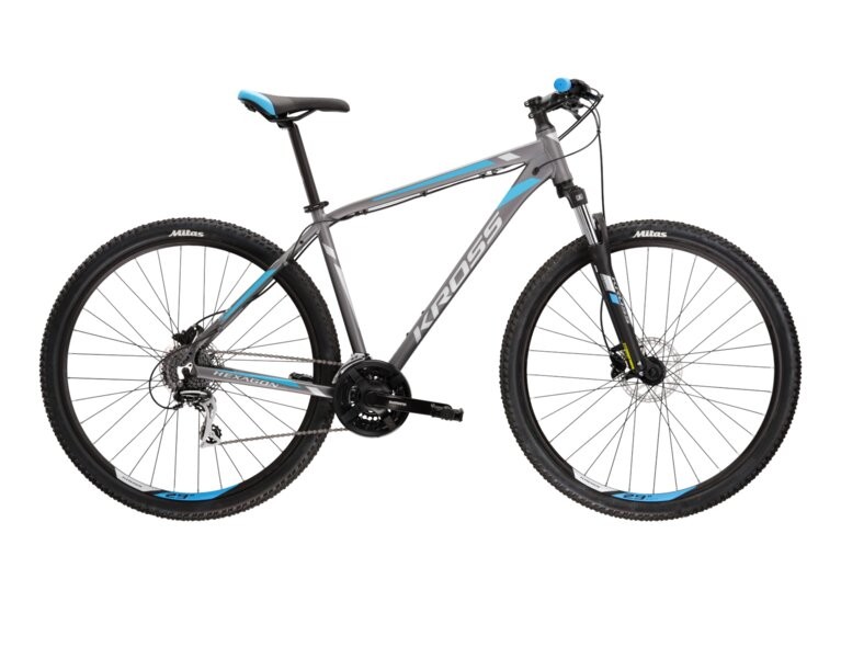 Rama Kross Hexagon 5.0 została wykonana z aluminium performance. Jest to specjalny stop aluminium performance 6061, dzięki czemu rama roweru jest sztywna i odporna na uszkodzenia. Jednocześnie, jest to stosunkowo lekki materiał, który może zaskoczyć niejednego rowerzystę swoimi właściwościami. Rama jest malowana proszkowo, co przekłada się na trwałość malowania oraz jego odporność na uszkodzenia mechaniczne. Kross Hexagon 5.0 dostępny jest w dwóch rozmiarach kół – 27,5 cala oraz 29 we wszystkich rozmiarach ramy. Niezależnie jednak który rozmiar wybierzesz znajdziesz na nich przystosowane do lekkiego terenu opony o szerokości 2,1 cala.