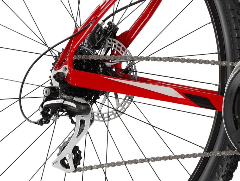 Hexagon 5.0 to doskonały wybór dla każdego szukającego roweru uniwersalnego. Sprawdzony napęd Shimano z 24 przełożeniami zapewnia bezproblemową i tanią eksploatację. Tylna przerzutka Shimano Acera ułatwia zmianę przełożeń nawet w trudniejszym terenie oraz wymaga mniejszej uwagi niż niższe grupy. By zapewnić pewność hamowania w każdych warunkach wyposażyliśmy Kross Hexagon 5.0 w hydrauliczne hamulce tarczowe. Zapewniają one dużą większą siłę hamowania niż klasyczne hamulce v-brake. To także dużo większa i precyzyjniejsza modulacja siły hamowania niż w przypadku mechanicznych hamulców tarczowych. Amortyzowany widelecSR Suntour XCE28 wygładzi wszelkie nierówności znajdujące się na drodze, a także poradzi sobie w terenie.