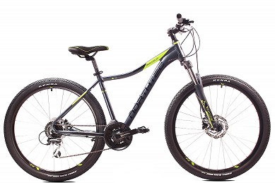 Rower MTB dla intensywnie jeżdżących cyklistek poszukujących niezawodnego osprzętu. Lekka hydroformowaną rama aluminiowa o sportowej geometrii, posiadająca system: Cable Inside Frame Wyposażony w Hamulce Tarczowe hydrauliczne gemma. Niezawodny napęd Shimano 3x9. Solidne, wytrzymałe koła zbudowane na piastach Alu Łożyska maszynowe 32H QR, wzmacnianych obręczach, szprychach Sapim i oponach terenowych, gwarantują bezpieczną jazdę w terenie. Amortyzator Suntour XCE DS 100mm z regulacją, zapewni optymalne tłumienie drgań i wstrząsów na górskich trasach.